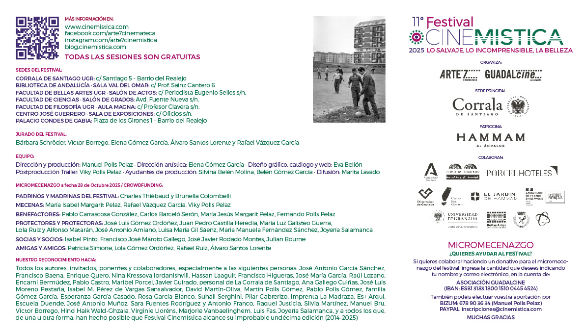 Como sabéis Festival Cinemistica no dispone de subvenciones, y se financia a través de pequeñas aportaciones del patrocinador y de las entidades colaboradoras. Si lo deseáis, podéis hacer efectiva vuestra colaboración voluntaria, haciendo un ingreso en la Cuenta bancaria de la Asociación Guadalcine de la Caja de Arquitectos de Granada (tras el mercado de San Agustín), por el medio que queráis (transferencia, depósito en mano). Indicando siempre por favor vuestro nombre y apellidos, que se reseñarán en la web y blog del festival.