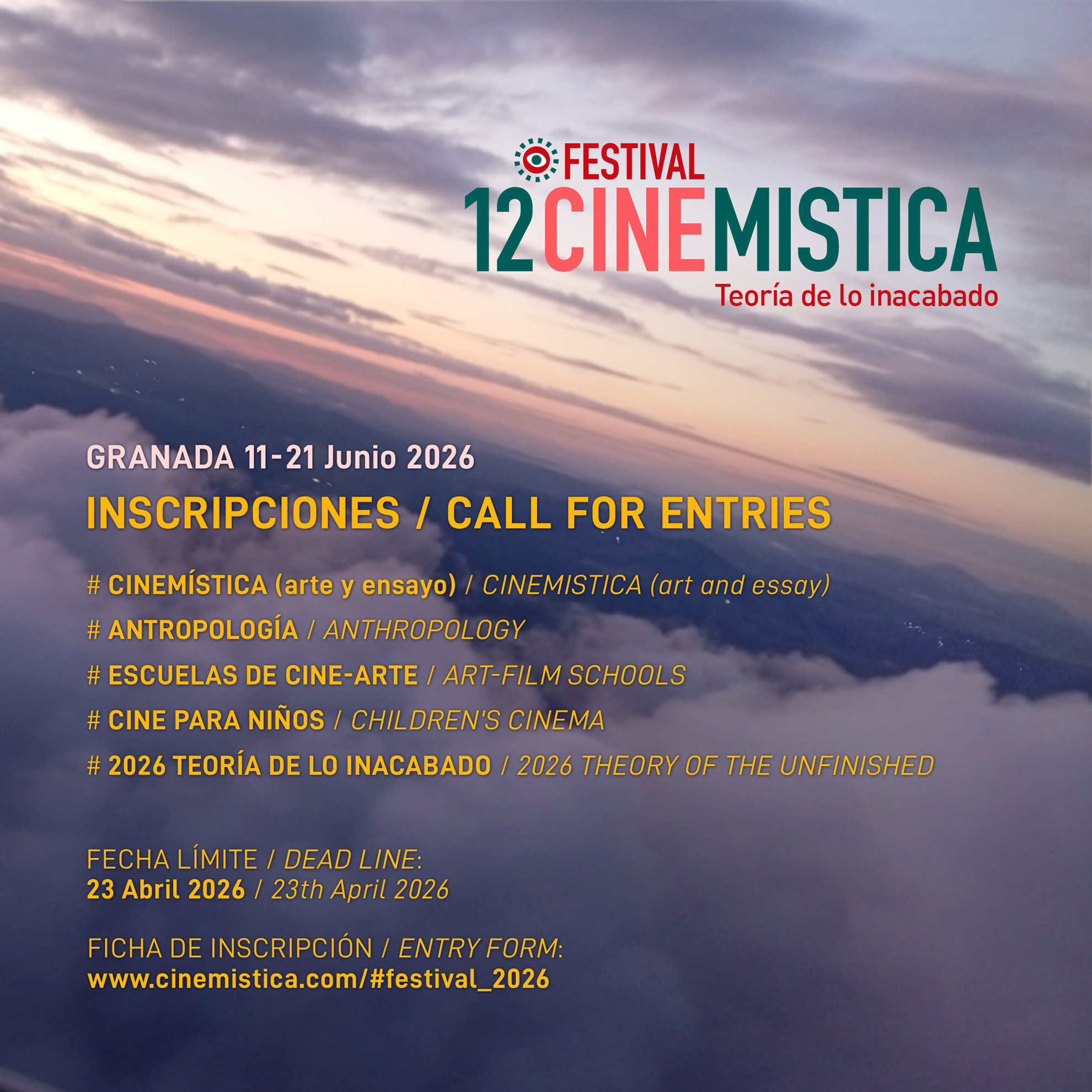 A las ya habituales cuatro secciones competitivas, como son las de Cinemística (cine de arte y ensayo), Antropología (films etnográficos, antropología visual), Escuelas de cine (películas de fin de estudios cinematográficos), y Cine para niños, se añade una quinta sección especial anual 2026 Teoría de lo inacabado.
