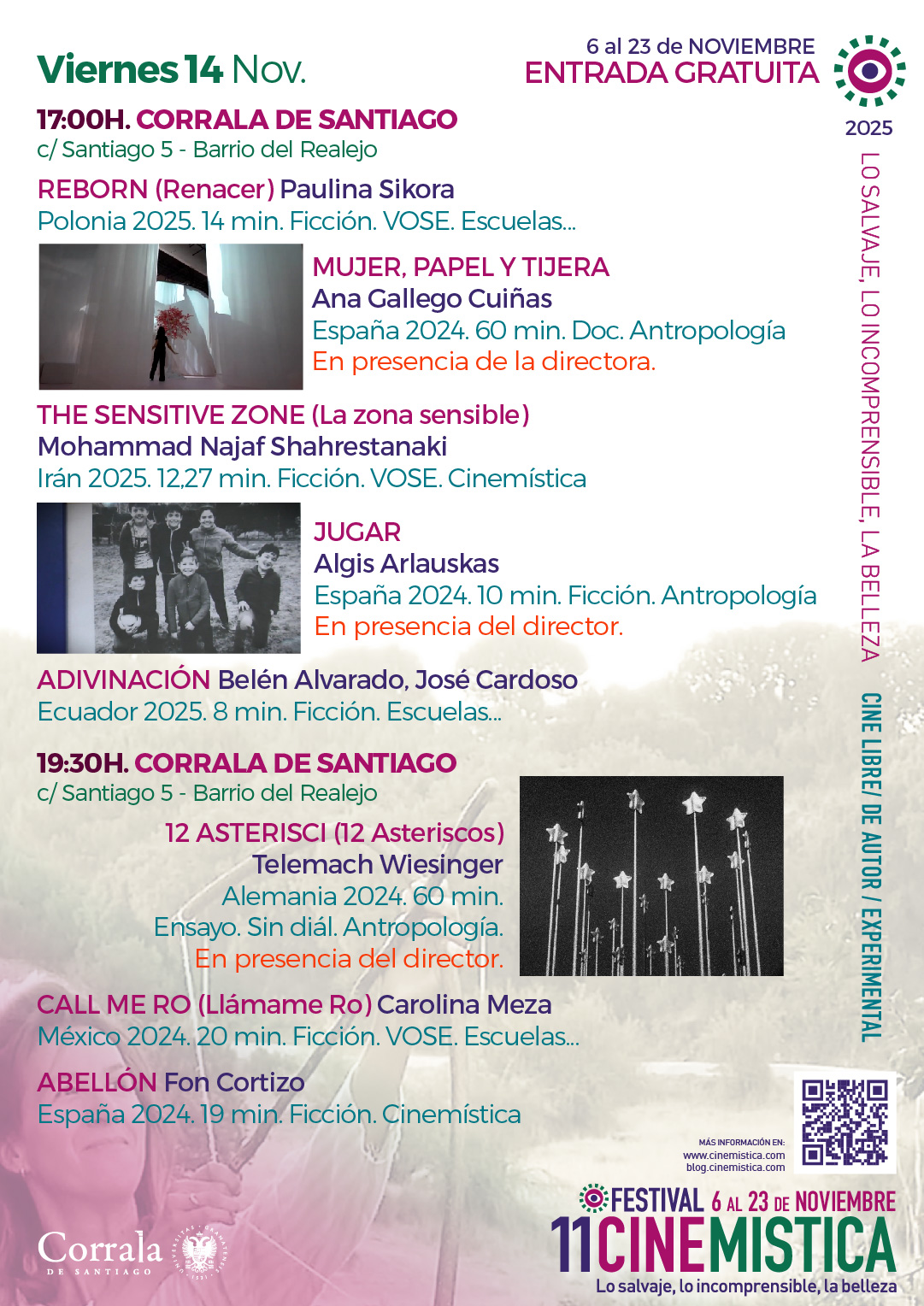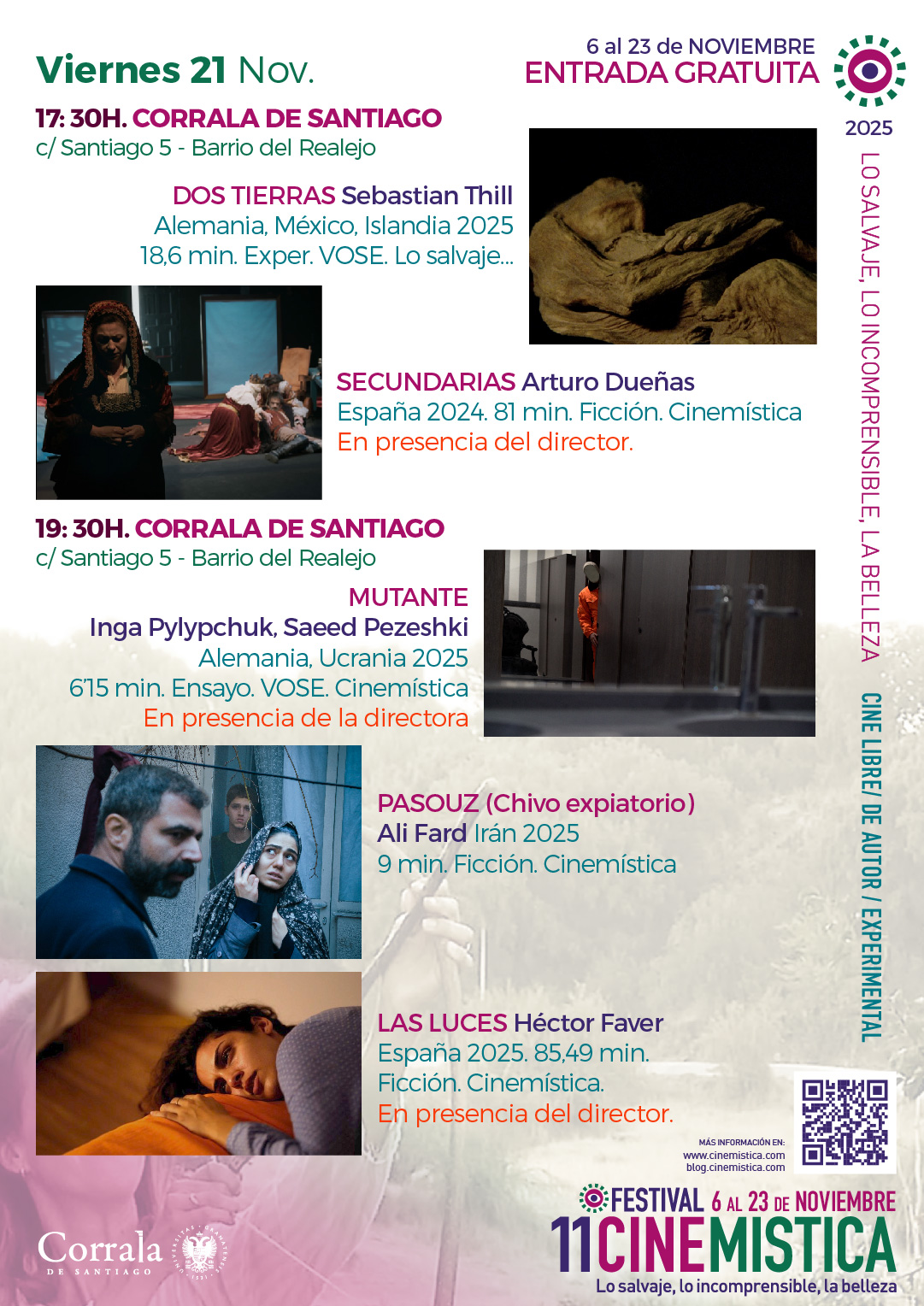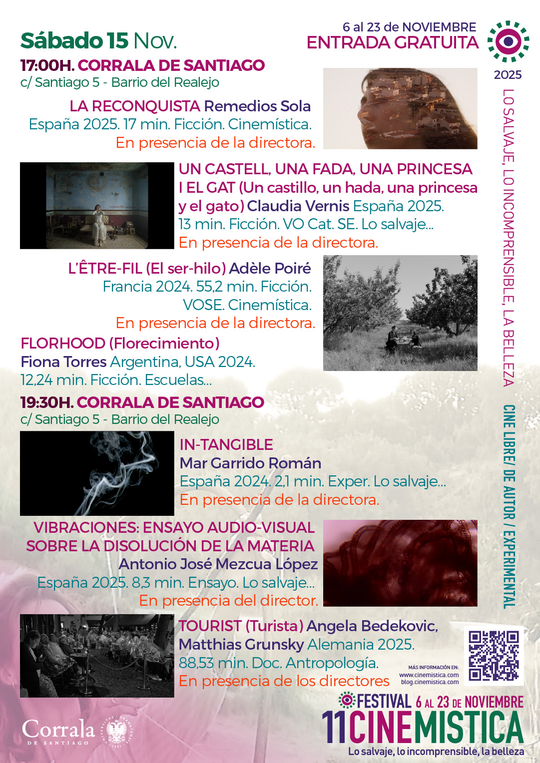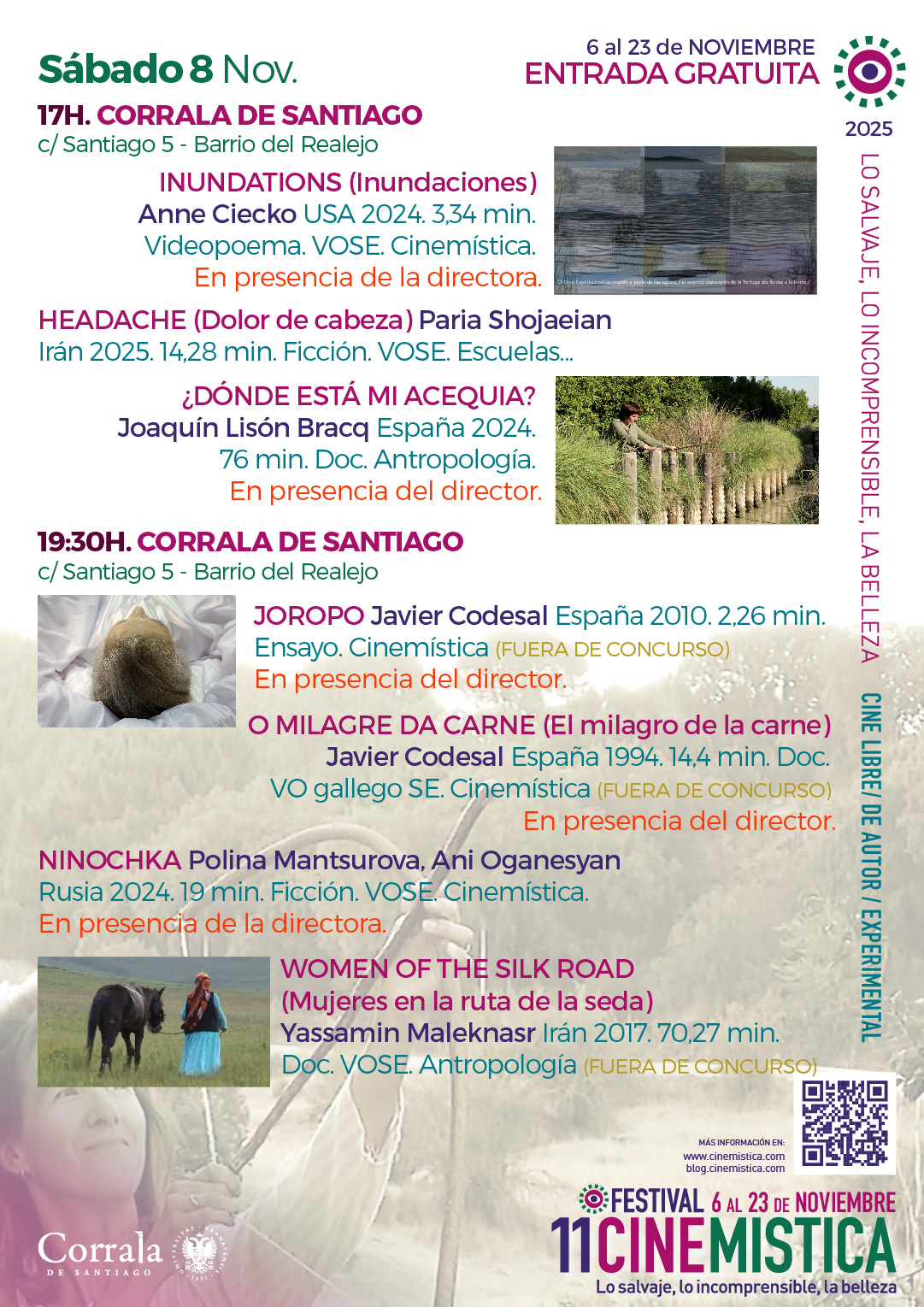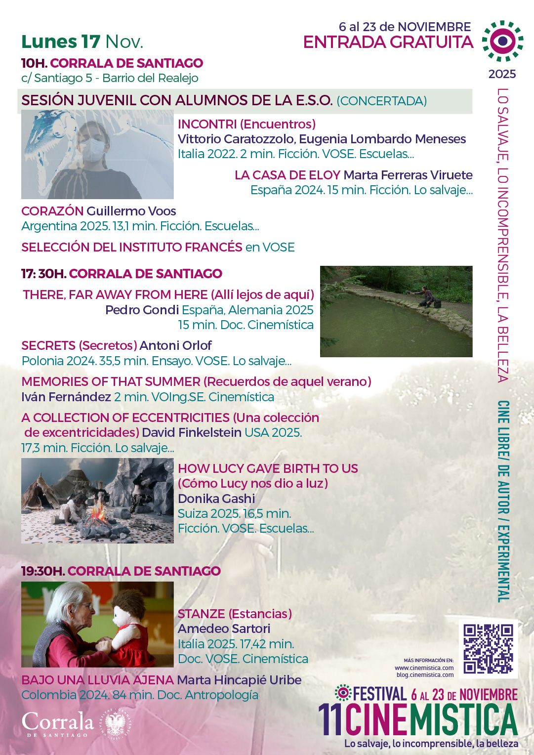 Filmmakers' looks, in all their socio-cultural diversity, interested in any film as a result of personal discovering, researching or experimentation, inspiration and work, from revelation or introspection of the authors. Quotidian, ecstasy and disparity as structures to create depth on the film treatment.